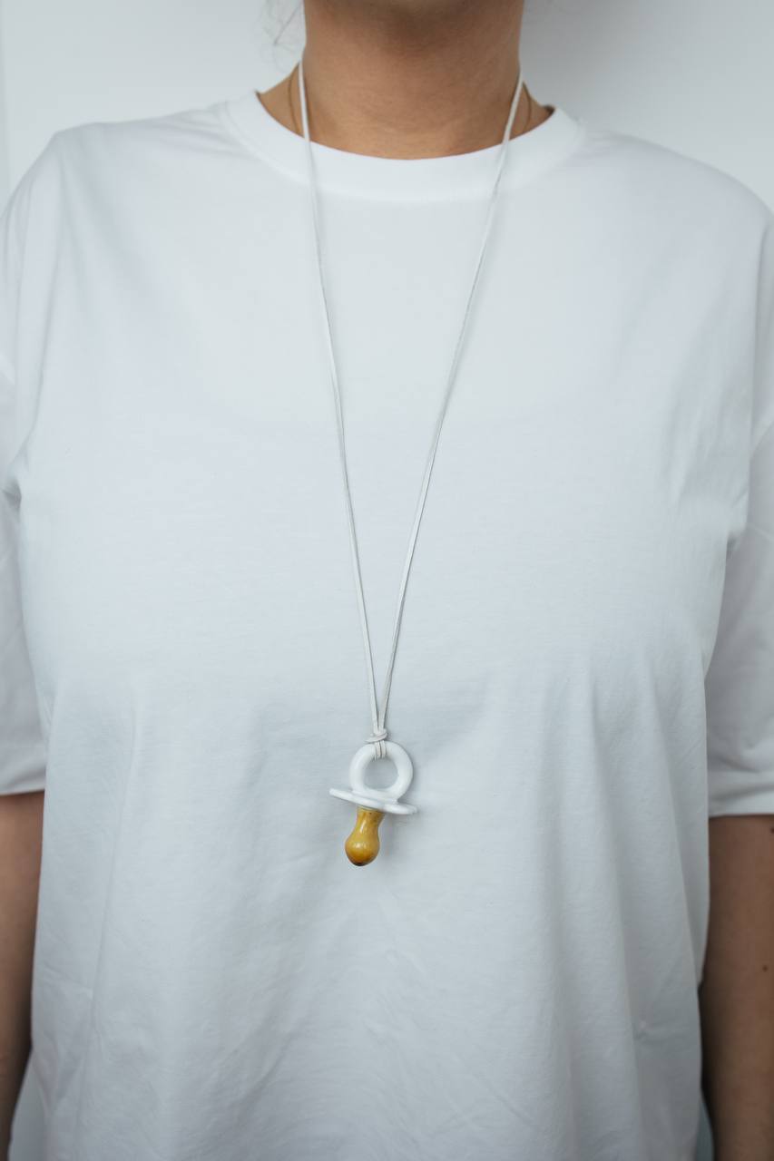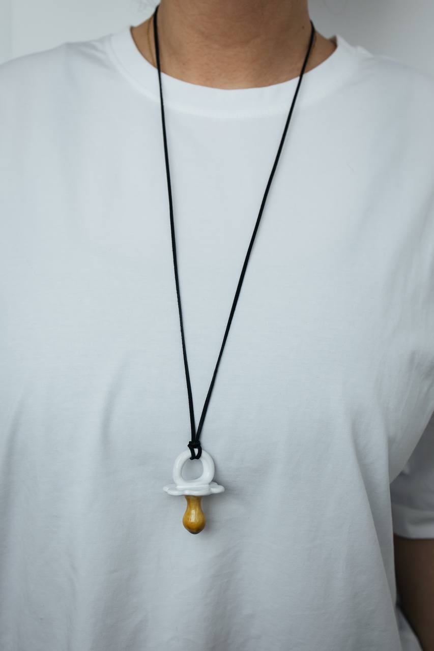 **"Подвеска Соска": Эксклюзивное керамическое украшение ручной работы** Создайте уникальный образ с нашей подвеской «Соска». Эта стильная деталь выполнена вручную из качественной керамики и дополнена элементами из натуральной кожи. Идеальный акцент! Прекрасно подходит в качестве подарка близким людям – это будет незабываемый жест внимания и заботы. Неповторимость каждой модели подчеркнет вашу индивидуальность и творческое начало. Выберите свой стиль уже сегодня!